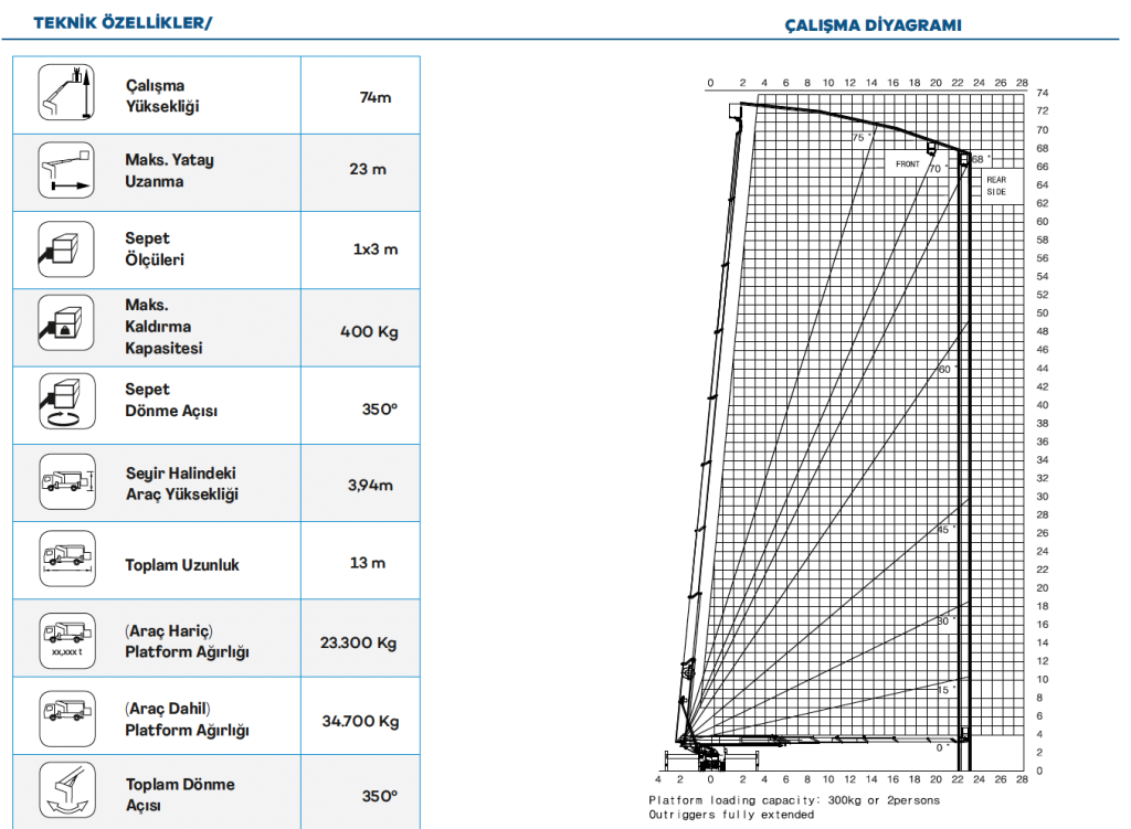 Araçüstü 75 Metre Teleskopik Platform - 75 Metre Sepetli Vinç
